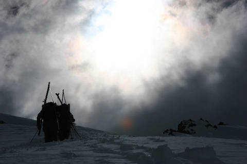 We had very deep coverage in 2005 but saw a wide variety of surface conditions and had only one clear day with Marte open. This is not a situation where you want to waste time with trial and error, and the Extremely Canadian guides made that day memorable with perfect choice of terrain and timing of sun exposure. This service is most valuable for the top group, where Joe can navigate extreme lines that would be very difficult for skiers to find safely on their own. Weather was unsettled at the beginning of the week, when we had some powder Sunday but it unfortunately rained on the bottom 1,000 vertical feet of the mountain on Monday. Terrain selection was important for the next two clear days while Marte was being excavated from a late August storm. And Extremely Canadian arranged a snowcat to take us up to 10,800 feet the afternoon before Marte opened.