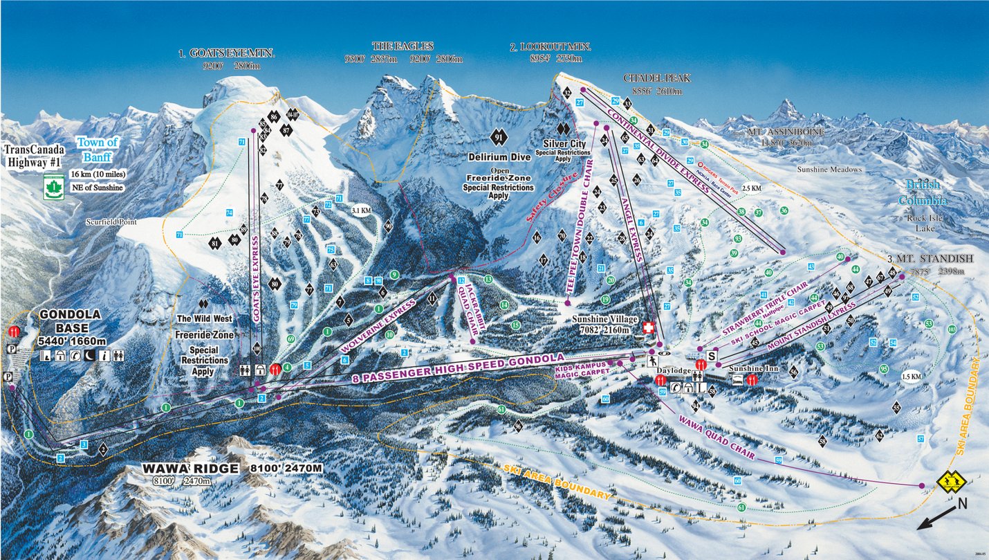 At 7:30 the next morning, I pulled up to the base station at Sunshine Village to find about 40 people already queued up in front of the gondola, licking their chops at the eight inches of dry, midwinter-like snow that had fallen overnight. An hour later, as the two-stage gondola took us 1,600 vertical feet up to Sunshine Village itself, I got a quick introduction to the lay of the land from a local sitting next to me.