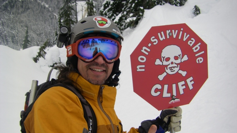 Bellingham, WA – At some point during our second day skiing at Mount Baker in Washington, we were meandering through steep, open woods when we came across a warning sign marked with a skull and crossbones: “non-survivable CLIFF!”