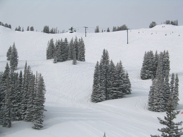 About 2.5 hrs of skiing gave us (commuter groomers and traverses omitted): Ballroom - Birdhouse Woods - Main St. - Nina's or Schuss Gully; Wildcat ropeline - Watson Knoll (who the hell knows what that bump is called); Razorback - Cecret Hill - Cabin Hill; Devil's Castle first bowl; Greeley Bowl - Greeley Hill; Greeley Bowl - Greeley Hill (yeah, it was that good the first time)