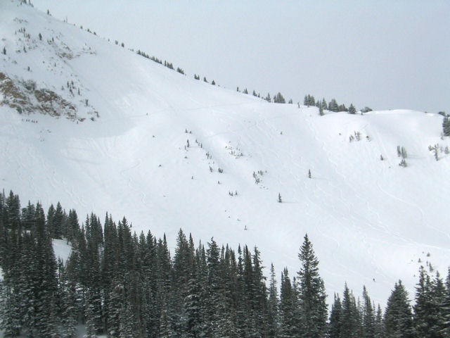 It was a tough call this morning. The avalanche report said a foot or more in upper Big Cottonwood Canyon (read: Brighton/Solitude) and 8 inches in upper Little Cottonwood Canyon (read: Alta/Snowbird). I called Anon E. Mus, and he had only a full-day ticket to Solitude, and as he didn't know if he'd be spending the full day he opted for Alta. OK, OK...I decided to forego the additional 4-5 inches and head for Alta as well. After all, I was only going up for a few runs.