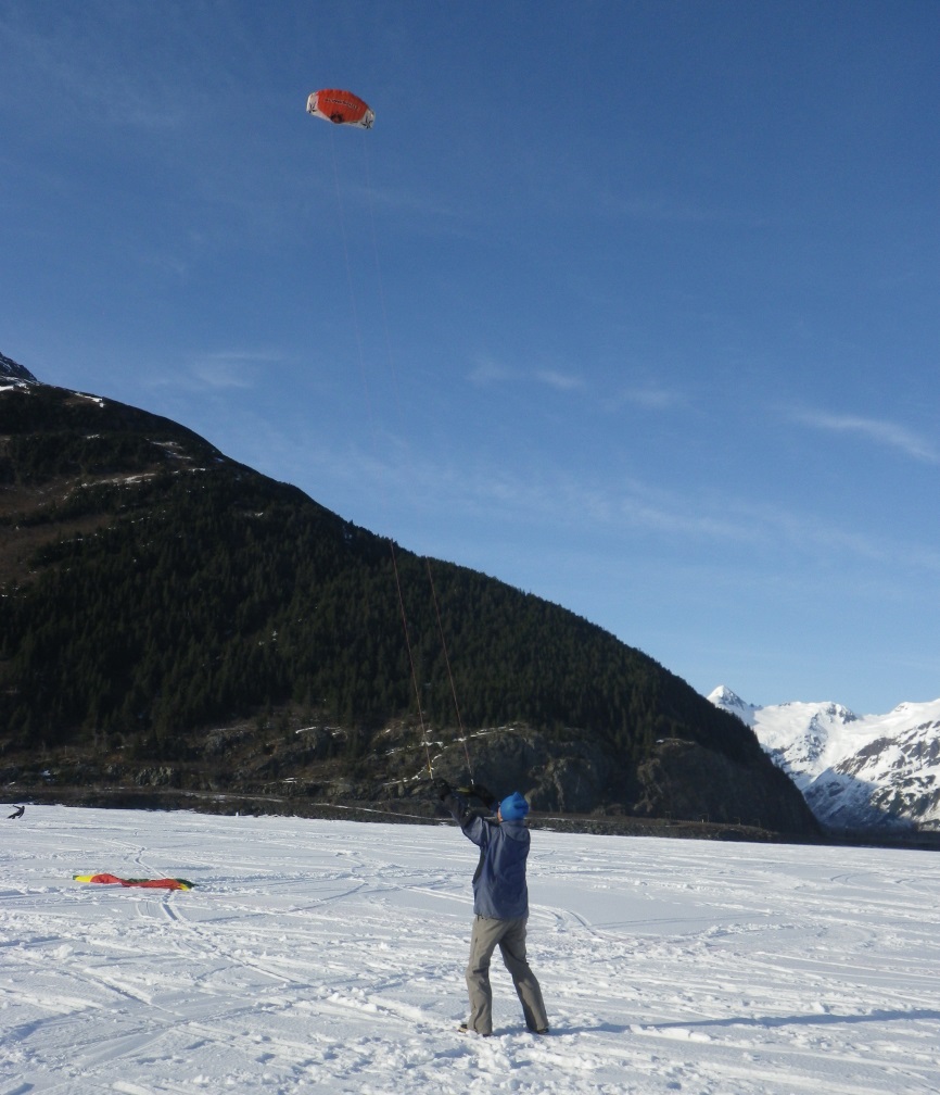 Sunset is already around 9PM so I knew we would have time to take a scenic drive down to Portage Lake. Much to our surprise we found quite active with kite skiers so we walked out there for a closer look.