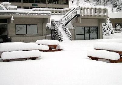 so anyways, on with the report. riding was really good. trails held up good until the end of the day when lots of rocks started popping up. got a few runs in with freshies. about 20" of it. still hit logs and whatnot though. BS recieved about 3" overnight, so the first few runs along the long green rolling cruisers was almost like riding powder........not really though. really soft snow and could catch edges easily if you weren't careful. a few jumps developed throughout the day which is always fun for me. almost spun into one guy who had cut in front of me coming off of a little roller. spun a quick 3 right next to him. didn't clip him though. i got all sketched out and ate it anyways. ha ha. it was just some local ripper riding next to me, so i wasn't to concerned if i hit him or not. i saw him at the base and appologized for almost clipping him though. he said he was sorry for getting in my way. uh, ok. i told him i should've yelled out to warn him, but he said it was cool either way, and wish i had stuck it and not gotten sketched out. close one