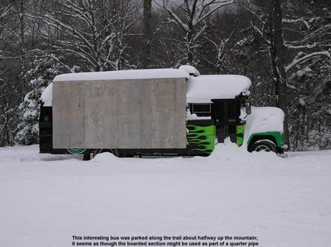 The weather had been warming since the previous day, and had risen above freezing in the valley. When we left my parent?s house in Shelburne (elevation ~180?), the car thermometer was reading 39 degrees F. At the bottom of the Bolton Valley access road (elevation ~400?) it was at 37 F, and by the time we reached Bolton?s main base (elevation ~2,100?) it was down to 34 F. There was a notable difference in the look of the snow on the mountain when compared to the valley. Down in the valley, the snow was getting spring-like, and had melted off the trees. Up on the mountain, even at the base area, there was a coating of white on the trees, and the snow still looked pretty dry and wintry. Bolton was reporting 2 inches of new snow, which we hoped would make for some pleasant skiing.