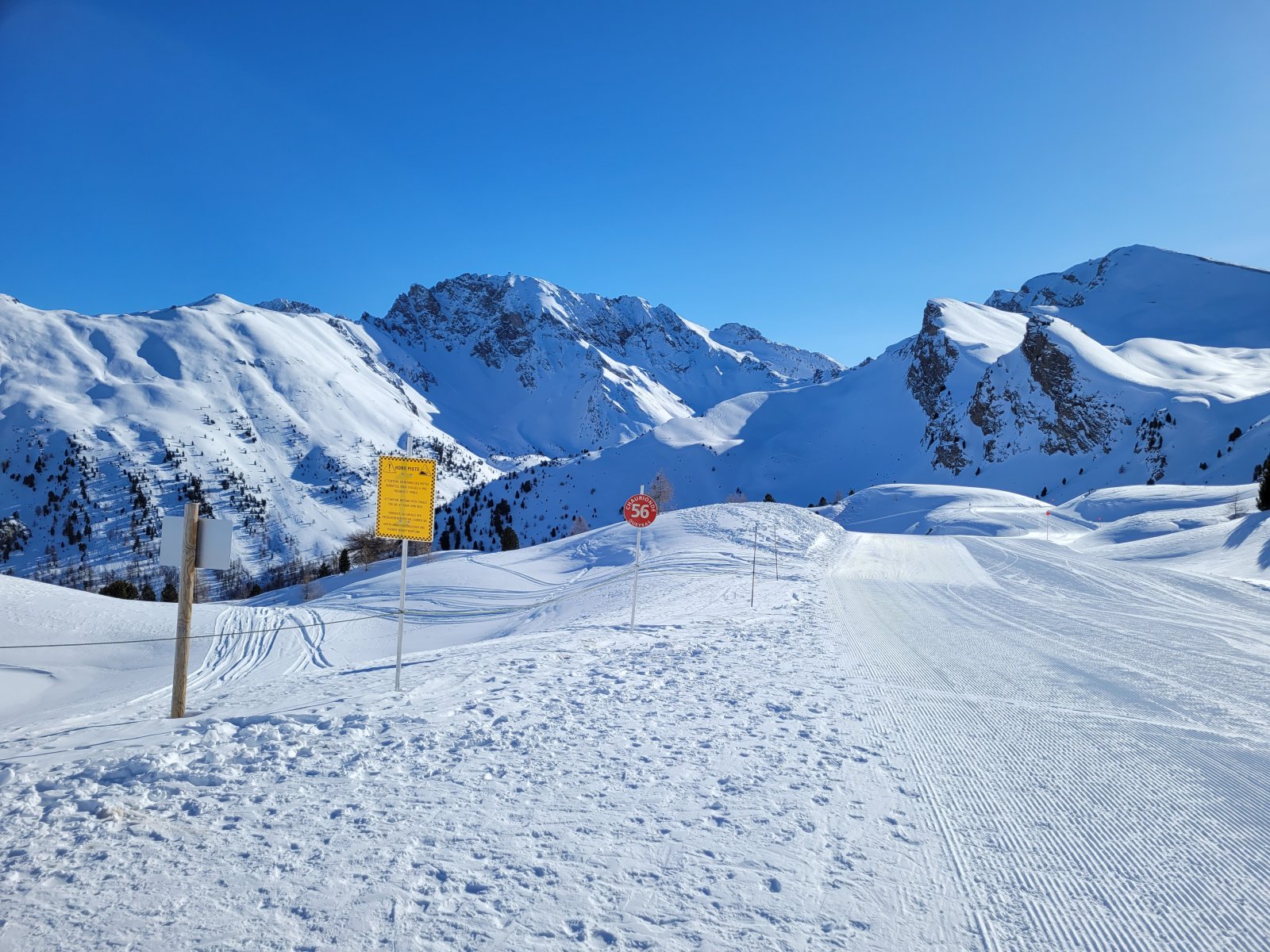 Beautiful views of the valley and absolutely perfect on-piste conditions. Zero scratchiness like we'd encountered at Puy Saint Vincent or Serre Chevalier.