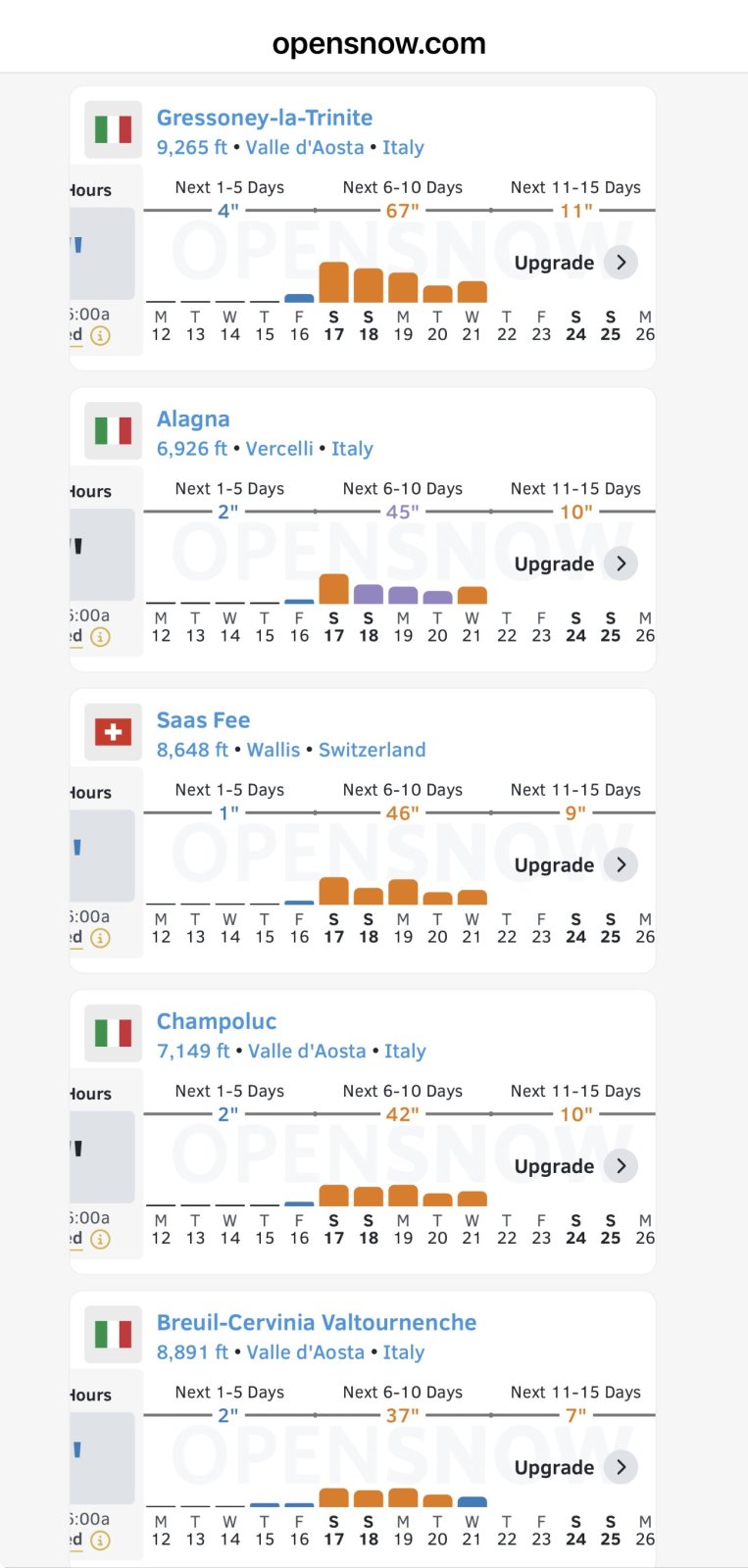I was wondering with favorable forecasts for Cervinia and Saas-Fee if Zermatt is getting snow. Zermatt getting Hohtalli/Stockhorn skiable is what will induce us to return there.
