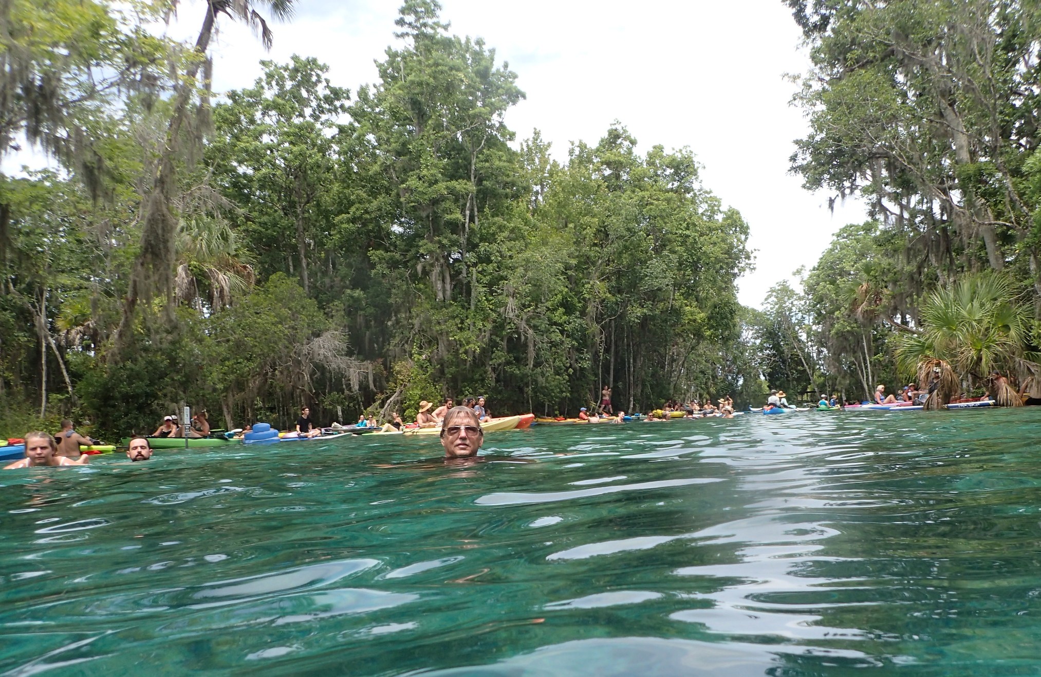 A big attraction in this area is the fresh water Three Sisters Spring. Its narrow entry is not conducive to social distancing.