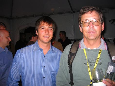 This event was organized by Glen Griffin of ICER spraywax, and the ramps were built on scaffolding by Snow Park Technologies, a leading terrain park construction company for many ski areas since the earliest Winter X-Games. Jonny Moseley was the promoter and emcee for both events. During ski season Moseley will be representing Telluride, and I recently met him in L.A. on a pre-season Telluride marketing tour. At that event I explained to some of the other media people that I had photographed Moseley's "dinner roll" at the 2002 Olympics from the terrace viewing area near the lower jump. Moseley will be graduating from U.C. Berkeley in December and he still lives in Marin County during the off-season.