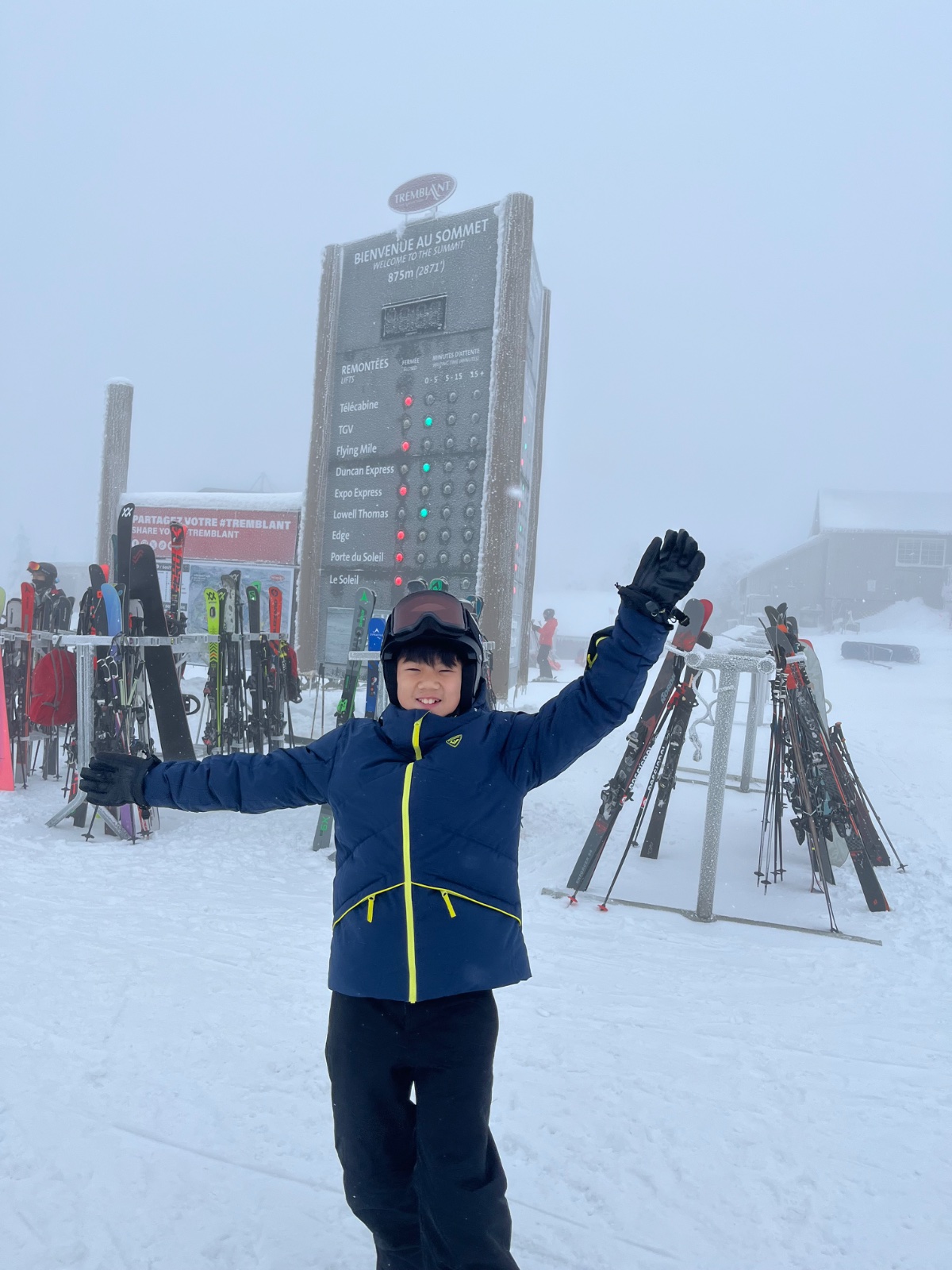 i wouldn’t usually make the 6 hr drive to Tremblant for opening day, however my son has a hockey tournament in Ottawa this weekend. Therefore we decided to add a day of skiing. Despite rain the day before, conditions were relatively good for the first day of the season. Rain had transitioned to snow during the night and likely 2-3 inch fresh at the top. About 6 runs open with top to bottom on N side and top to the bottom of TGV on S side. Lots of snow under Flying Mile, but they are getting that ready for FIS Womens GS in a week and I dont see that opening until after the race. Photo of my son at the mountain..