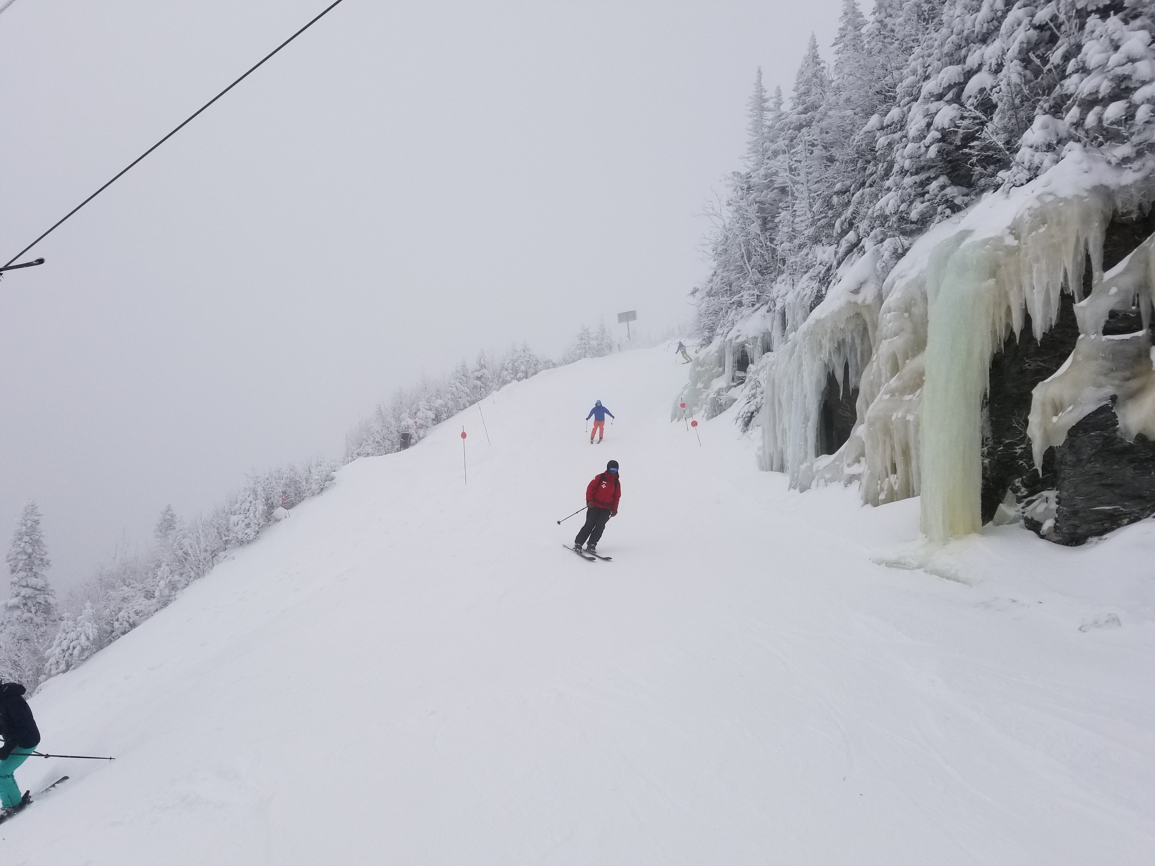 Woke up Sunday to a foot and still snowing hard..now were talking. Skied all day in the best conditions of the year. Hit all the usual suspects..Goats a favorite. Around noon a freezing mist and fog blew in. Now it got tough. At least half the crowd was gone..and so where my legs and visibility. Called it at 1..couldnt see anymore and everyone was crashing all over the place.