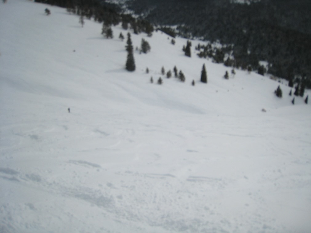 We finally exited the bowls well after 3PM, skied Ledges 2/3 of the way down the front side. Paul departed via Lionshead while we skied into Vail Village to visit bootfitter Dano Bruno, who had worked with Liz in Beaver Creek the past 2 days. Near the bottom we scored a few more untracked turns near Giant Steps.